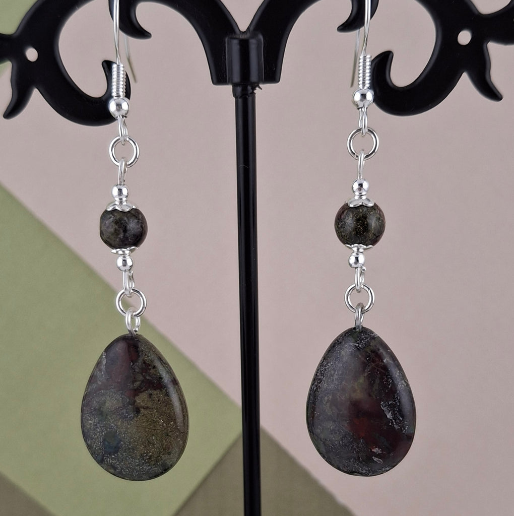 Healing: Bloodstone is an energy cleanser and immune stimulator for acute infection. This dark green gem with bright red splatters has been sought out for thousands of years for its unique appearance and perceived healing properties. It stimulates the flow of lymph and metabolic processes, revitalizes and reenergizes when body and mind are exhausted. Purifies the blood and detoxifies the liver, intestine, kidneys, spleen and bladder.