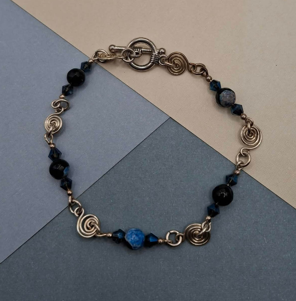 Sale! Blue/Black Faceted Agate Swirl Bracelet