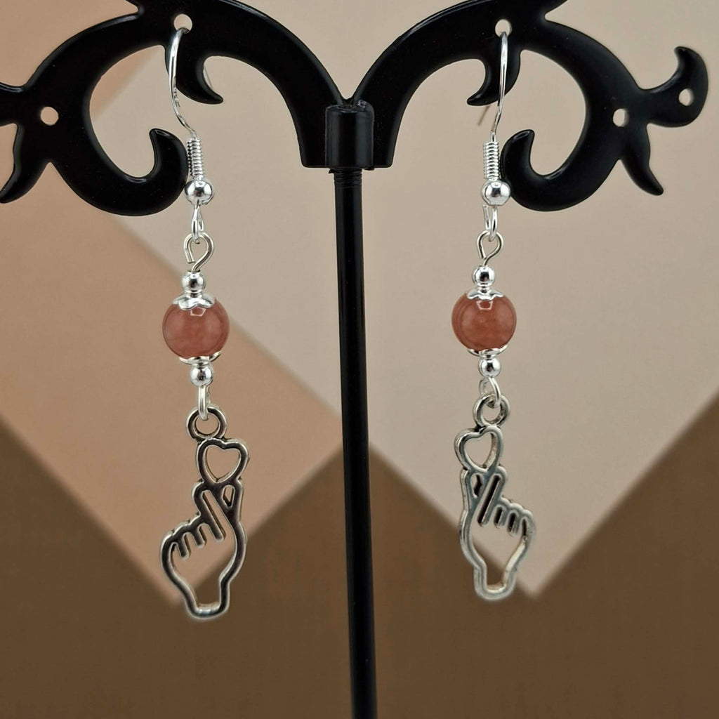 Sunstone Crossed Fingers Heart Earrings